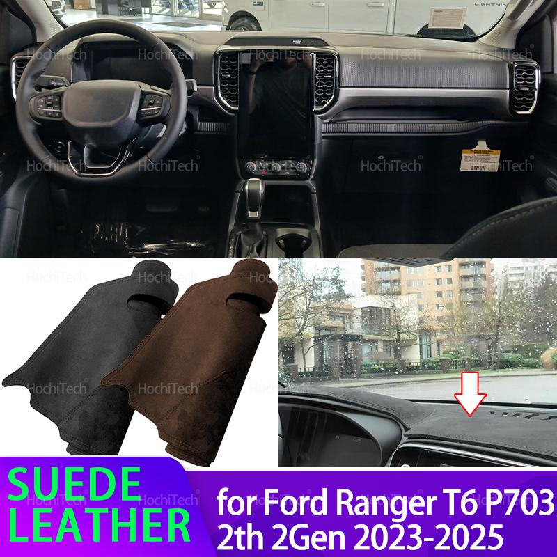 For Ford Ranger T6 P703 2th 2Gen 2023 2024 2025 Suede Leather Dashmat Black/Brown Dashboard Cover Sun Shade Carpet Non-slip Pad