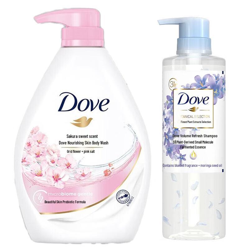 Dove Cherry Blossom Body Wash & Botanical Shampoo Bundle