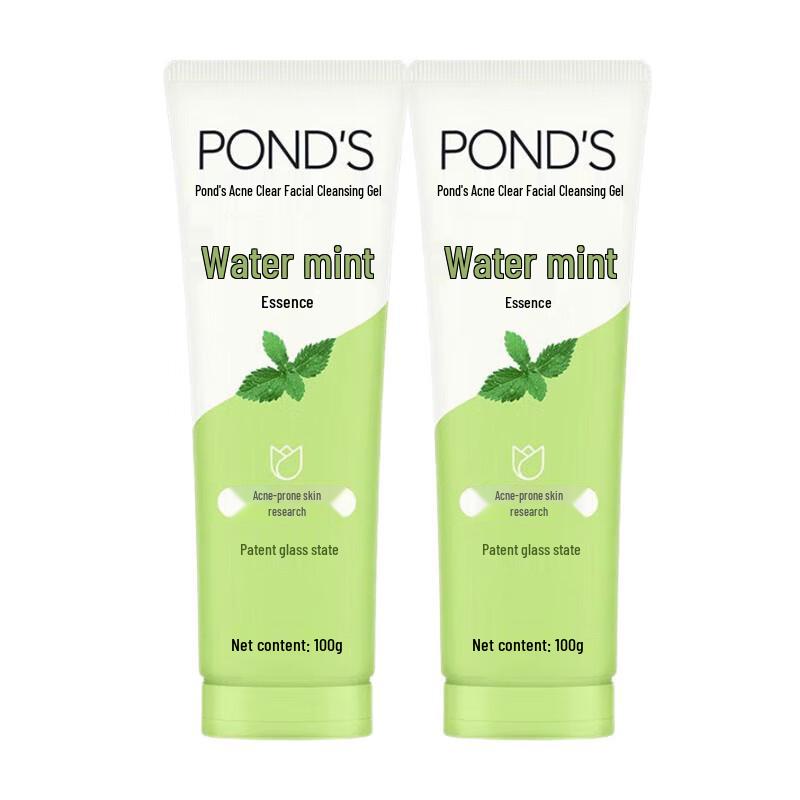 This POND'S facial cleansing gel is formulated to help clear acne while providing gentle cleansing and moisturizing. Infused with refreshing water mint, it leaves skin feeling clean and soothed. This pack includes two 100g tubes, suitable for various skin types.