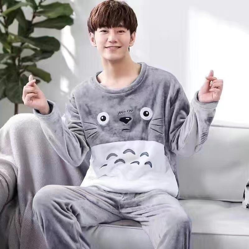 Toamnă Iarnă Nouă Pijamale din Lână Coral pentru Bărbat Gât Rotund Mânecă Lungă Seturi de Lounge Bărbat 2 Piese Tipărire Moda Costum Home pentru Bărbat