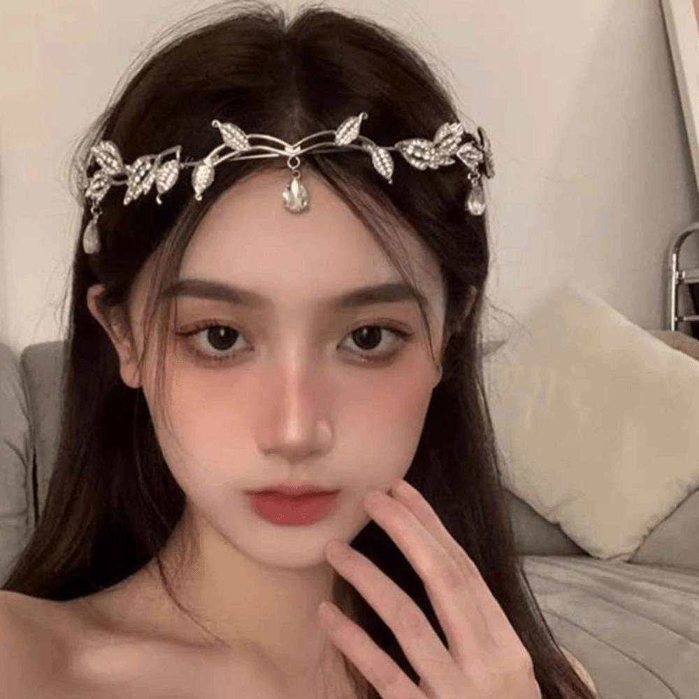 Leaf Design Crystal Forehead Accessory Exquisite Bride Shiny Hair Hoop Girls