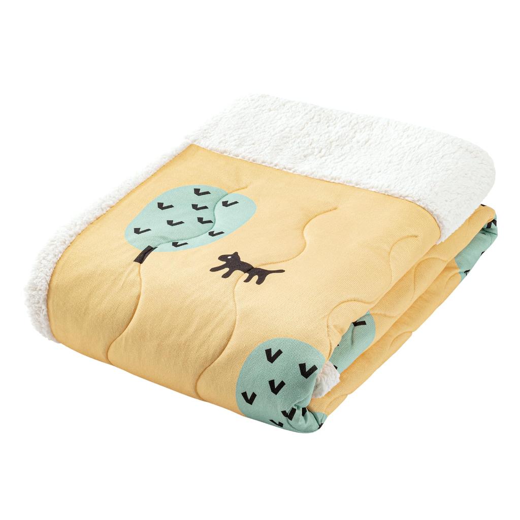 Nishikawa Atsuko Matano Quilt Blanket, Single, Washable, Fluffy Sheepskin Boa, MT3653, Cat and Tree Design, Yellow, FE03903026