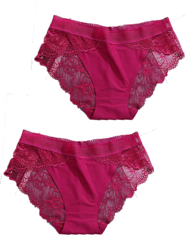 DIAFELIZ Women's 2-Piece Set of Panties, Full Lace Back, Comfortable Groin, Stress-Free Design, Raspberry Pink, Size L