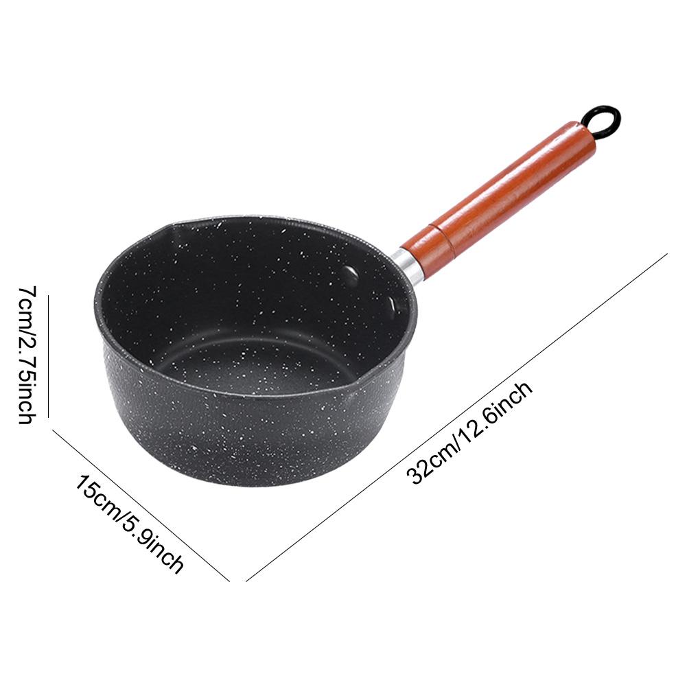 14CM Sauce Pan Cooking Pot with Pour Spout Milk Saucepan Wooden Handle Stick Proof Sauce Pan for Home Kitchen