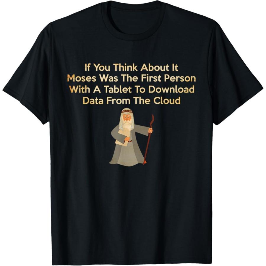 Moses first person with tablet download from cloud T-Shirt T-Shirt
