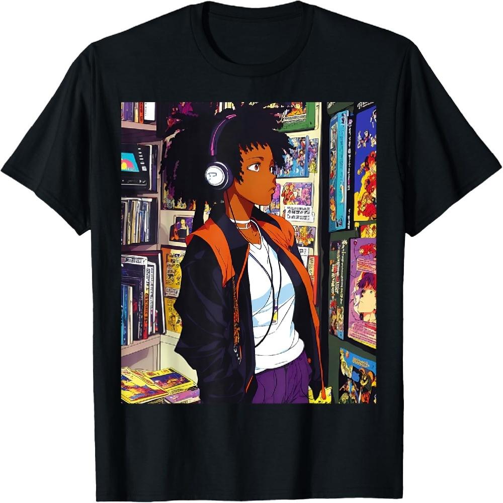 Anime Black girl Lofi Music 90s Retro Afro Cartoon T-Shirt