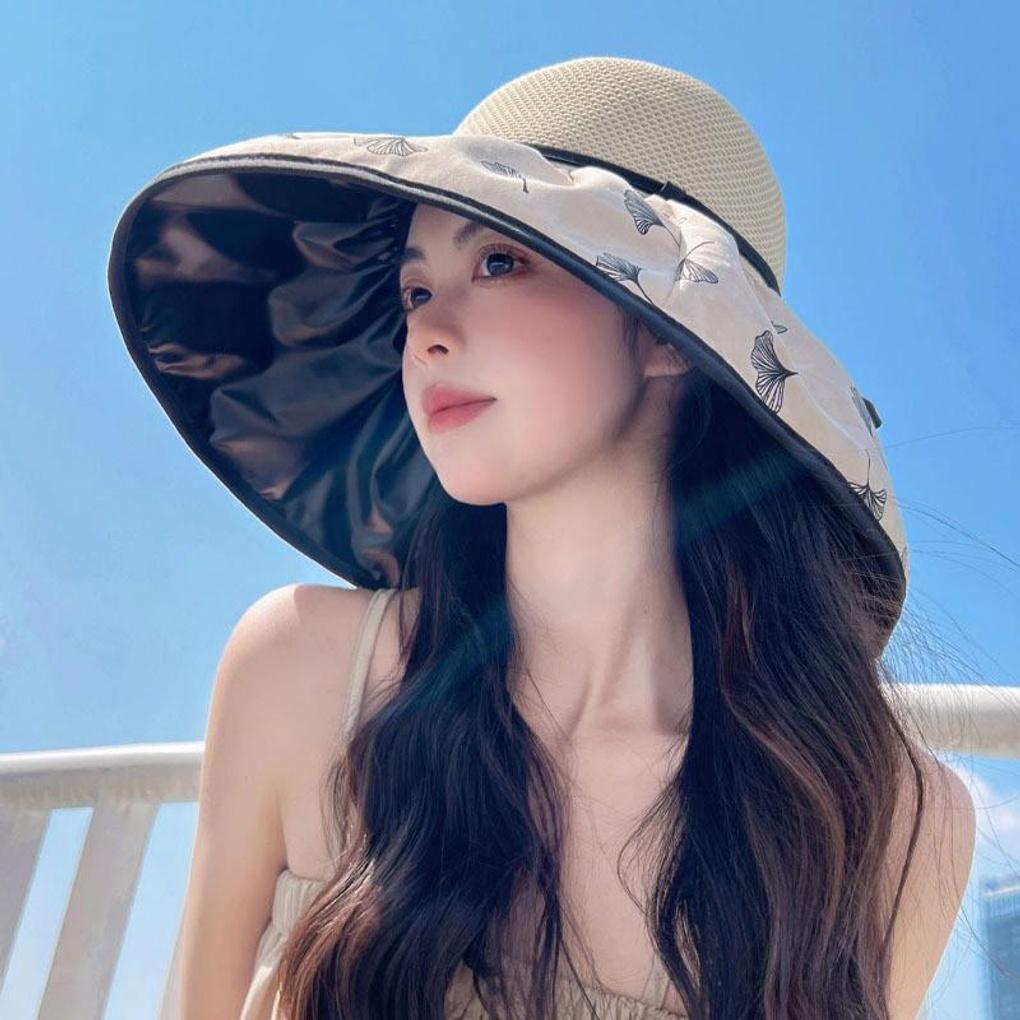Women's Fashion Daily Ginkgo Leaf Black Coated Bucket Hat