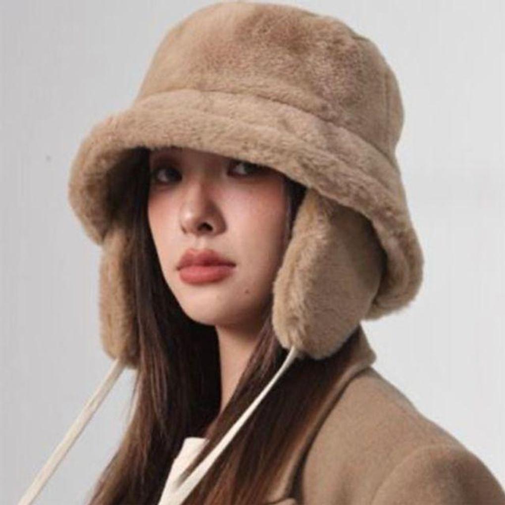 Detachable fur earmuffs and bell-bottom hat for winter warmth