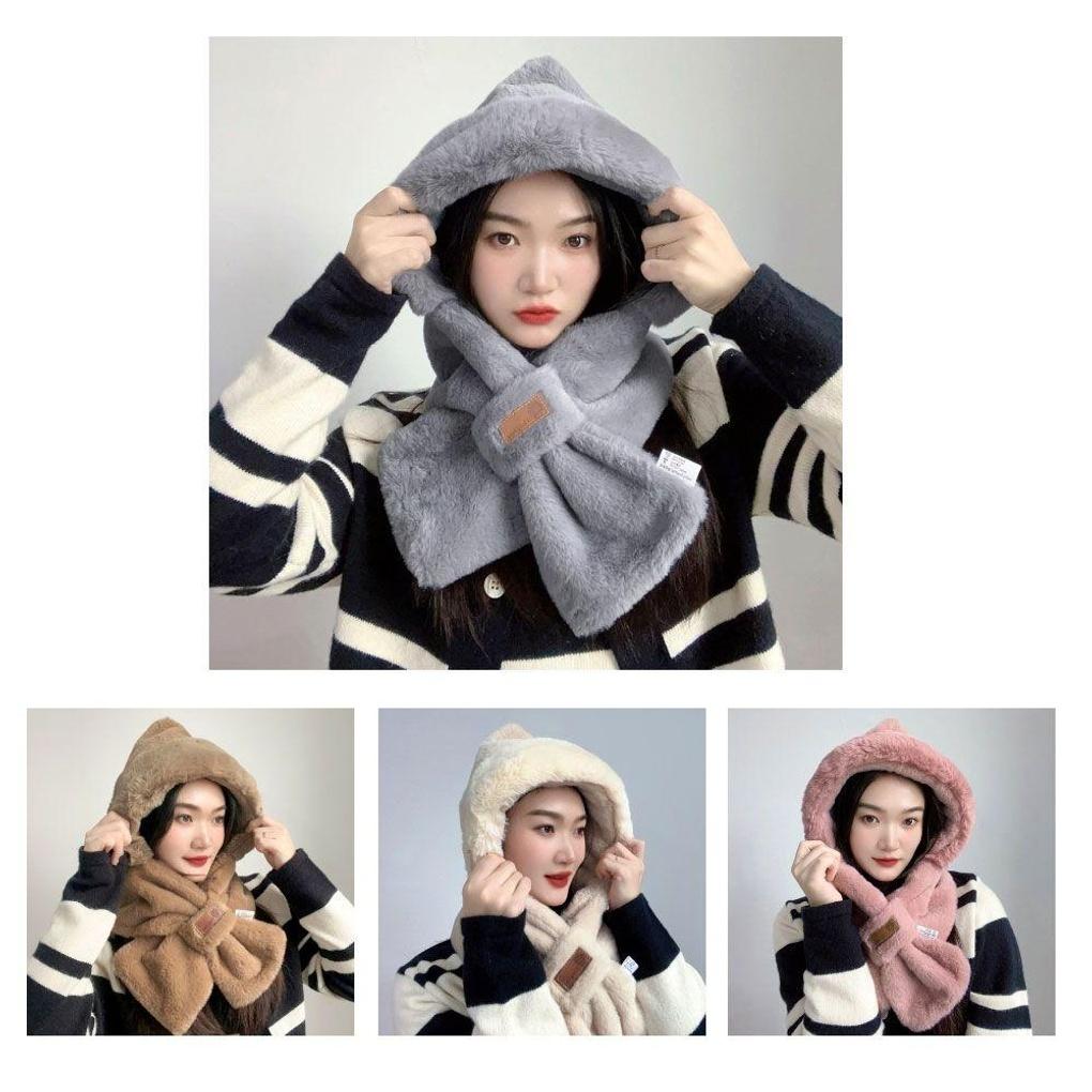 Luxury fur soft hooded muffler winter hat scarf
