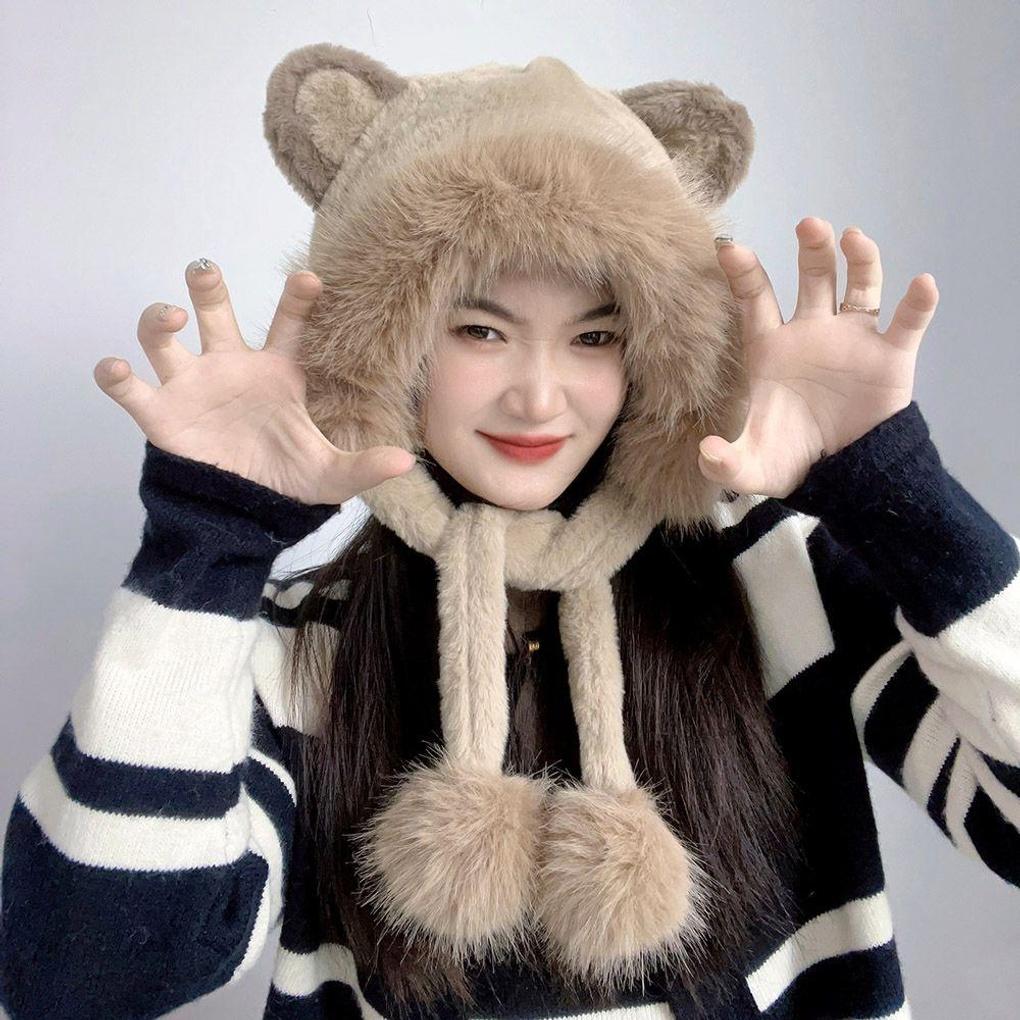 Drop-shaped teddy bear earflap hat winter cold-weather trapper hat