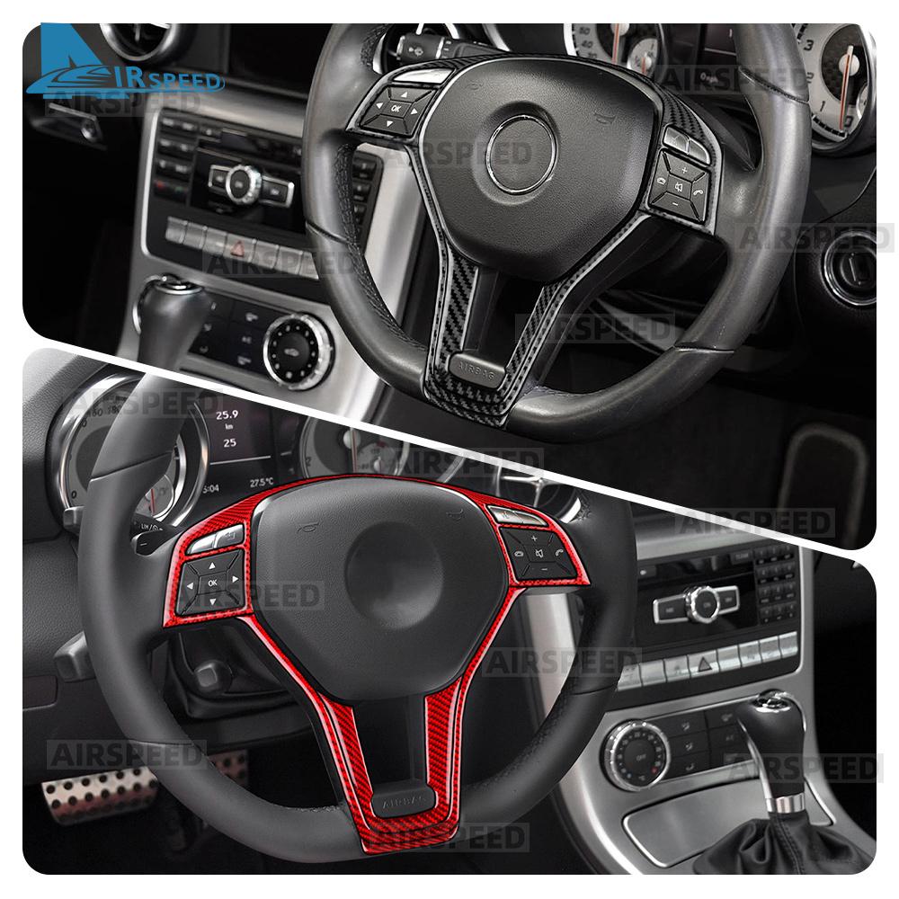 Real Soft Carbon Fiber Trim Sticker For Mercedes Benz SLK R172 2011 2012 2013 2014 2015 2016 Car Steering Wheel Button Panel