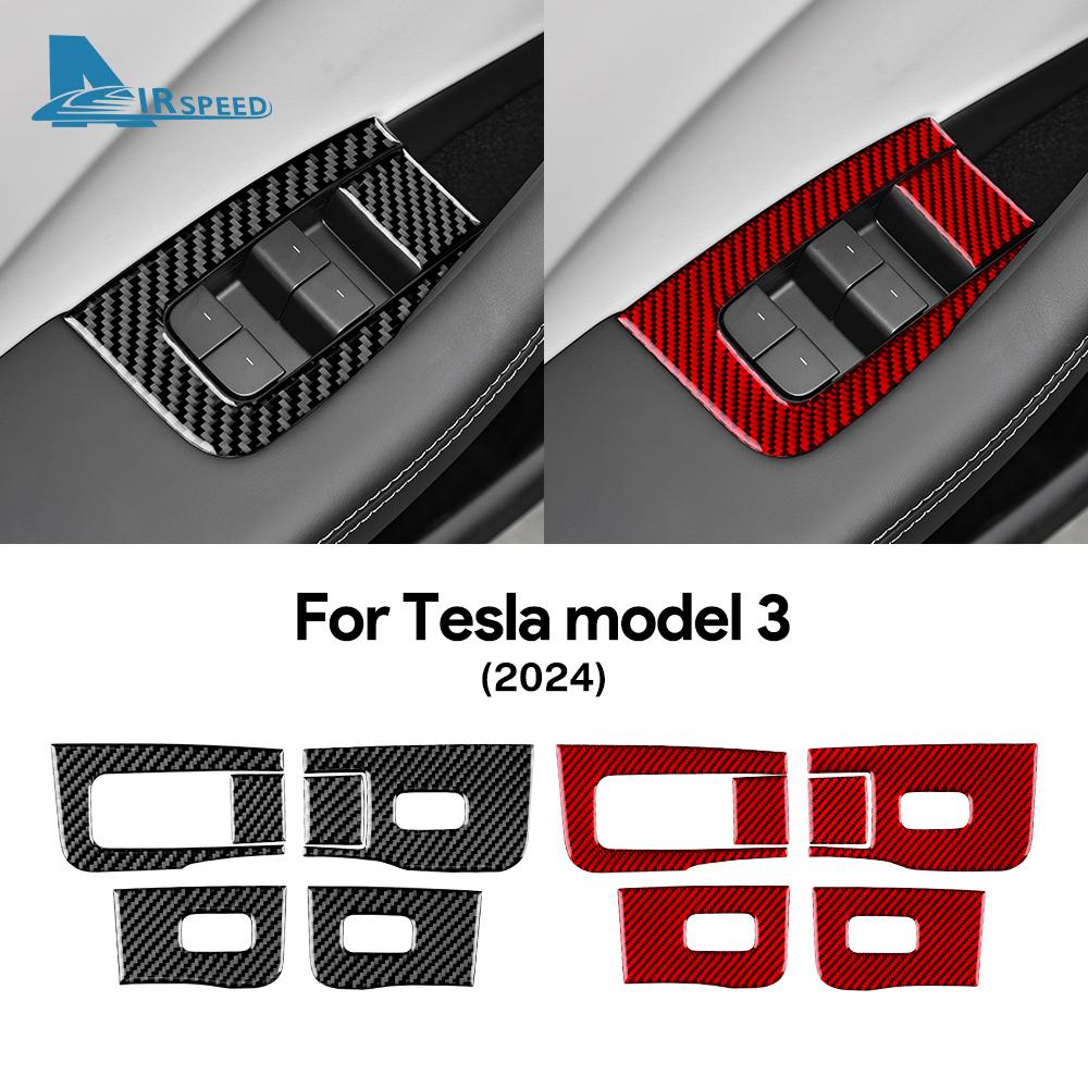 For Tesla Model 3 Highland 2025 2025 Real Soft Carbon Fiber Window Lifter Switch Sticker LHD RHD Accessories