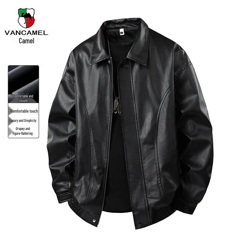 Men's VANCAMEL American Style Lapel PU Leather Jacket