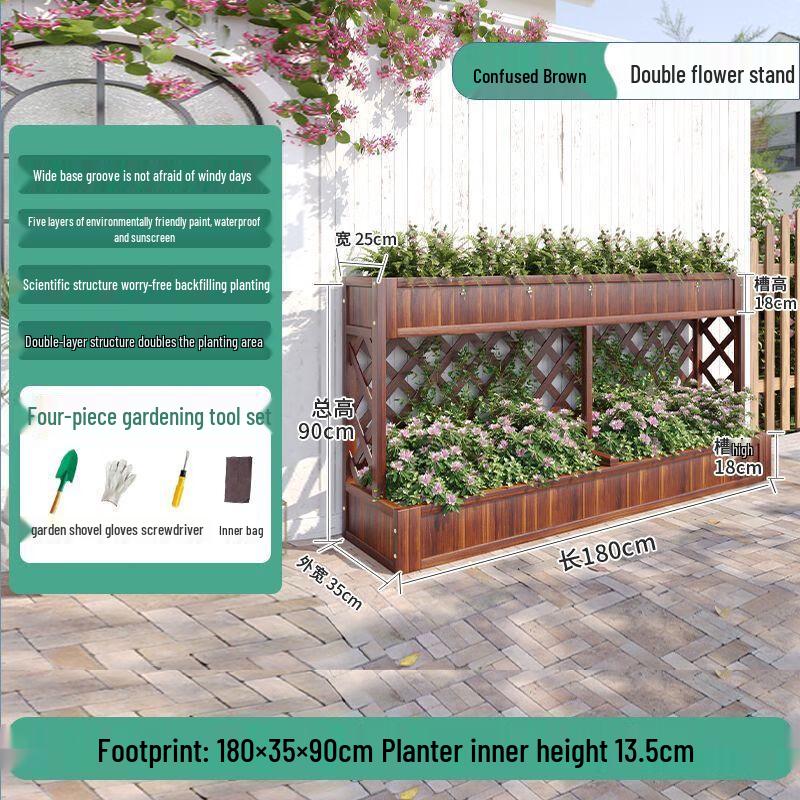 Anti-Corrosion Wood Double-Layer Planter Box with Fence