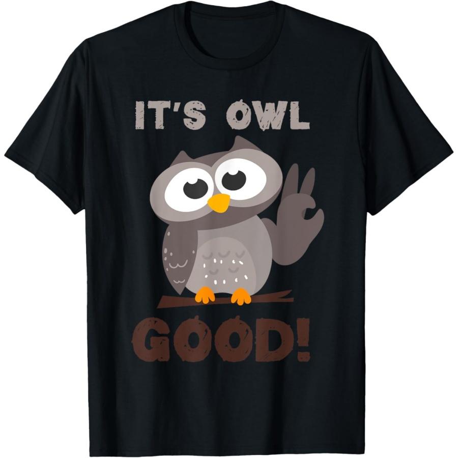 Too Cute Owl Good Pun Design For Girls & Boys Unisex-Adults & Kids T-Shirt, Black, Small, Short Sleeve, Classic Fit, Cotton, Polyester
