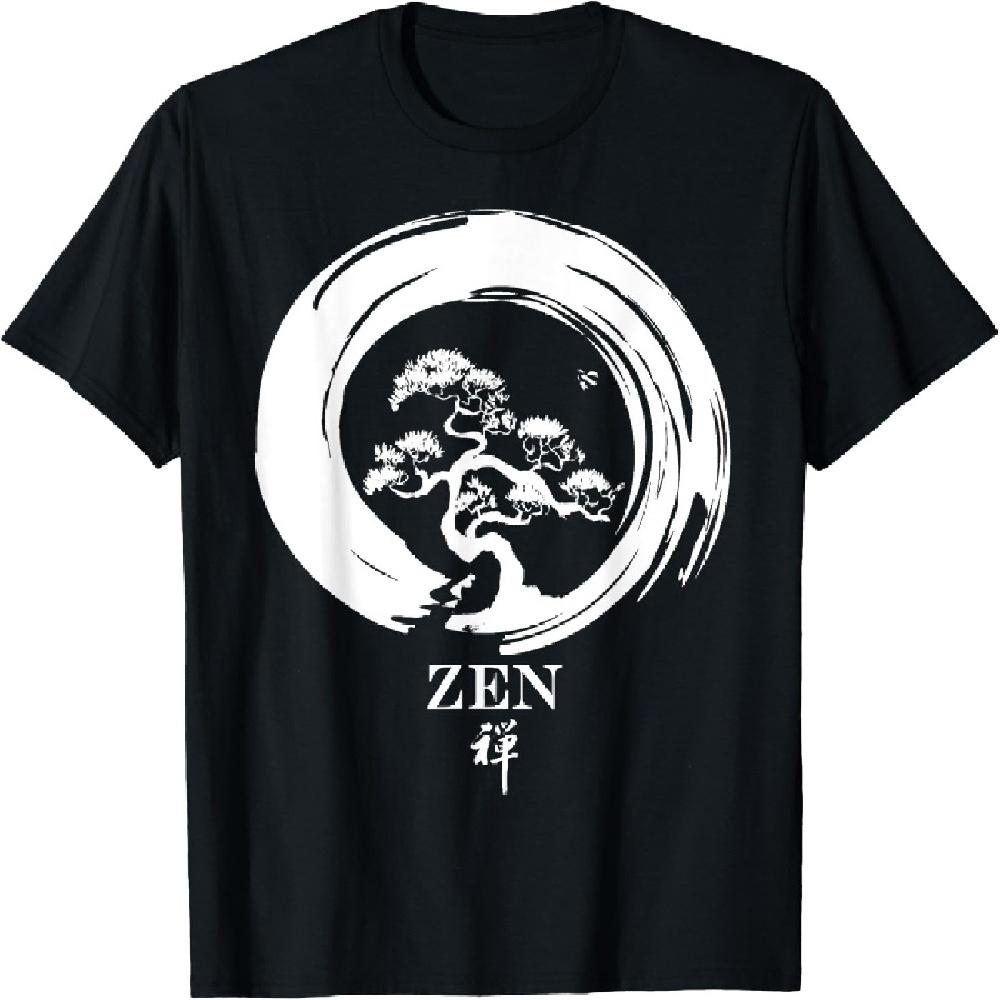 Bonsai Tree in Enso Circle - Buddhist Zen Calligraphy T-Shirt