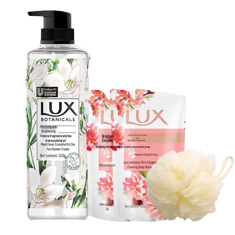 Indulge in the refreshing scent of LUX Freesia & Tea Tree Oil Shower Gel. This cleansing and long-lasting fragranced shower liquid is perfect for most skin types (excluding sensitive skin), leaving your skin feeling clean and refreshed. This comprehensive set includes a 520g bottle, two 200g refill pouches, and a convenient bath ball for a complete shower experience.