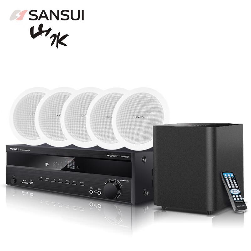 The SANSUI T2 In-Ceiling Home Theater System delivers immersive audio for your living room or conference space. This comprehensive package includes a powerful 400W amplifier, five 6.5-inch ceiling speakers, and an 8-inch subwoofer, creating a rich sound experience. Enjoy versatile connectivity options including Bluetooth, AUX, Optical, Coaxial, and USB for all your audio sources.