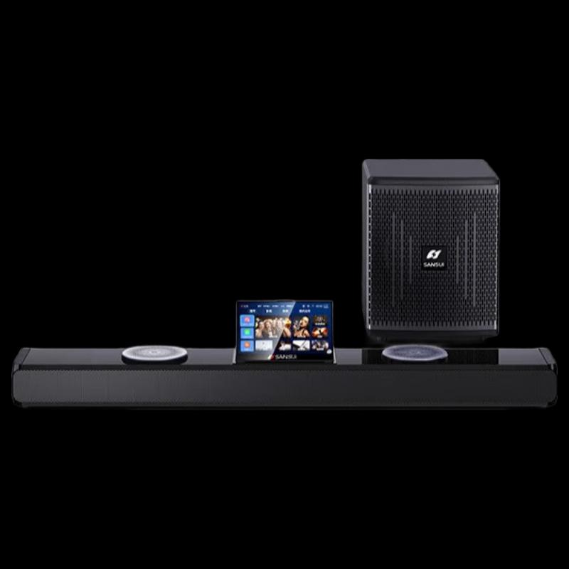 Elevate your home entertainment with the SANSUI 93H Home Theater KTV Soundbar System. This comprehensive audio package delivers powerful stereo surround sound, complete with a dedicated subwoofer for rich, deep bass. Enjoy seamless connectivity options including wireless Bluetooth, Wi-Fi, and USB, making it perfect for an immersive TV audio experience, lively karaoke sessions, and high-quality music playback. Transform your living room into a dynamic entertainment hub with this versatile and stylish sound system.