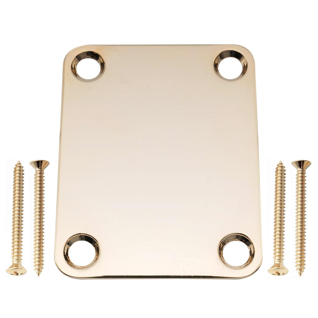 Musiclily Pro Guitar Neck Plate, Steel, 4-Point Fastening, for Electric Guitars and Basses, Gold