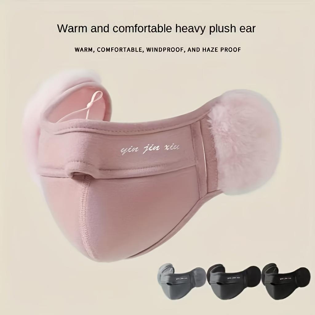 Winter Warm Windproof Mask with Fluffy Ear Covers - Thick Dustproof Breathable Mouth Cover Half Face Earflaps