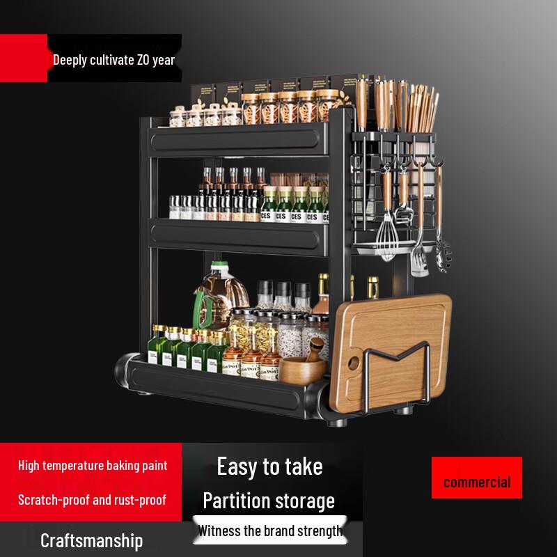 Multifunctional 3-Tier Carbon Steel Kitchen Storage Rack