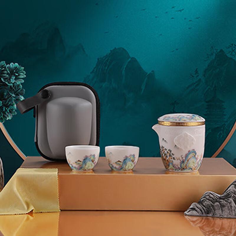 Chaxun Mutton Fat Jade Ceramic Portable Travel Tea Set