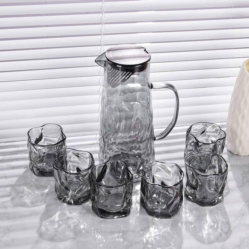 Smoky Gray Ripple Glass Pitcher & Origami Cup Set