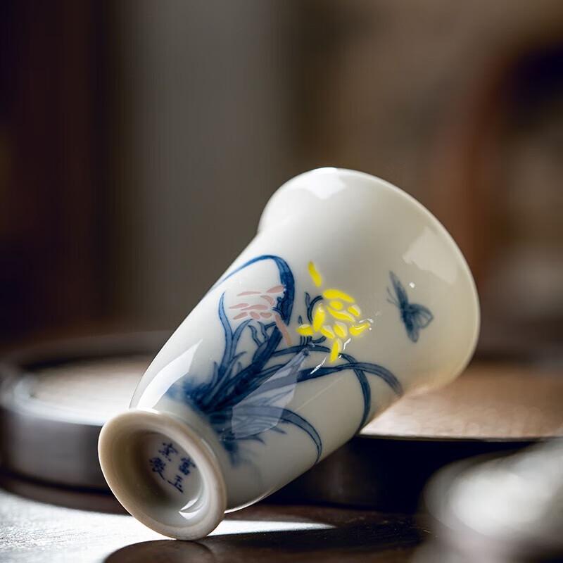 Jingdezhen Blue & White Orchid Ceramic Aroma Cup