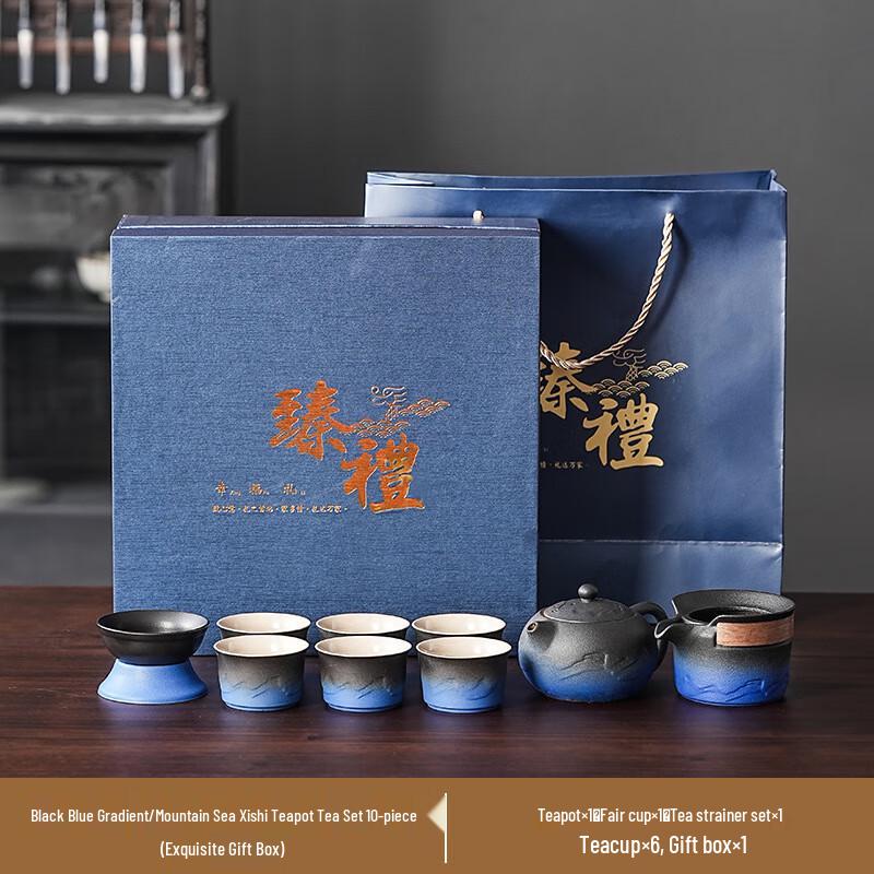 Xunyi Black Blue Gradient Ceramic Travel Tea Set