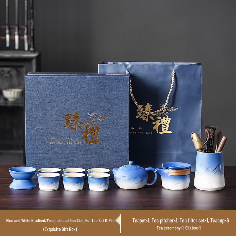Xunyi Blue-White Gradient Ceramic Travel Tea Set