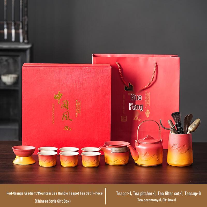 Xunyi Red-Orange Gradient Ceramic Travel Tea Set