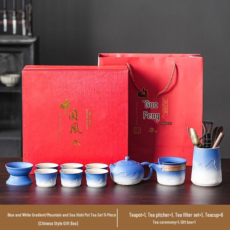 Blue & White Gradient Ceramic Travel Tea Set