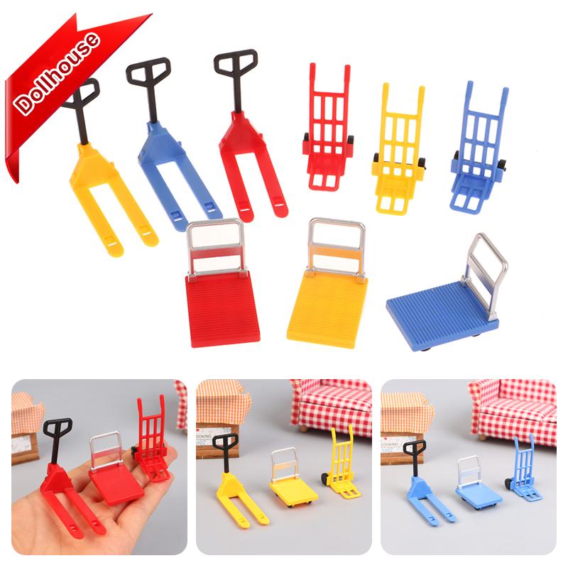 3Pcs 1:12 Dollhouse Miniature Cart Trolley Stair Climbing Machine Mini Outdoor Cart Forklift Moving Tools Model Home Decor Toys