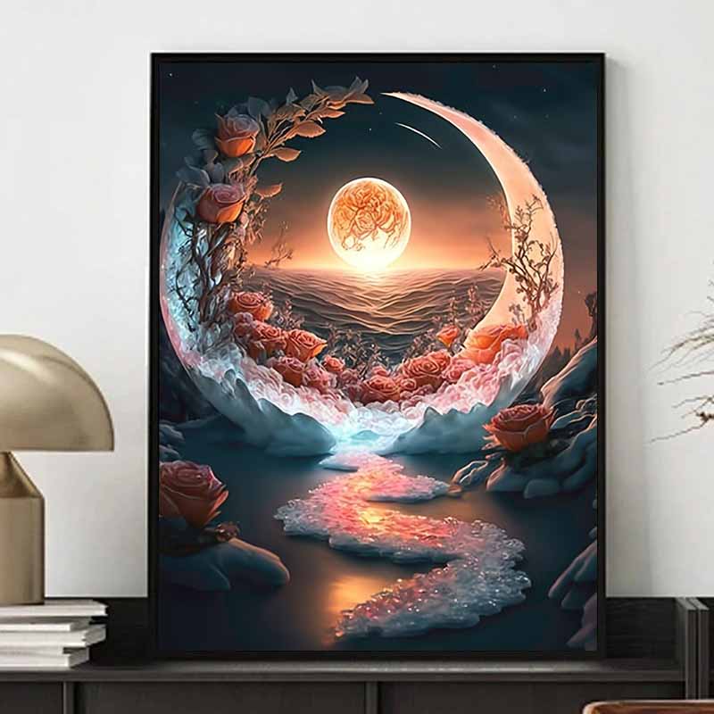 New Arrival 5D DIY Full Circle Diamond Painting "Moon Flower Sea" Embroidery Cross Stitch Home Decor Gift