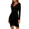 Rochie de catifea pentru femei Sexy plisată Slim cu decolteu adânc în V Elegantă cu mâneci lungi petrecere înfășurată rochie de seară