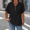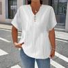 Women's Fashionable Casual Solid Color Button V-Neck T-Shirt Top
