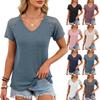 Women's Fashion Solid Color V Neck Lace Lace Loose Short Sleeve T-shirt Top
