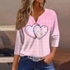 Women's Fashion Button-Up V-Neck Three-Quarter Sleeve Valentine's Day Print Top
