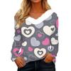 Women's Valentine's Day Printed Long-Sleeved Shirt, V-Neck, Casual Loose-Fitting T-Shirt Top