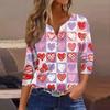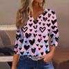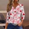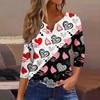Women's Fashion Button-Up V-Neck Three-Quarter Sleeve Valentine's Day Print Top
