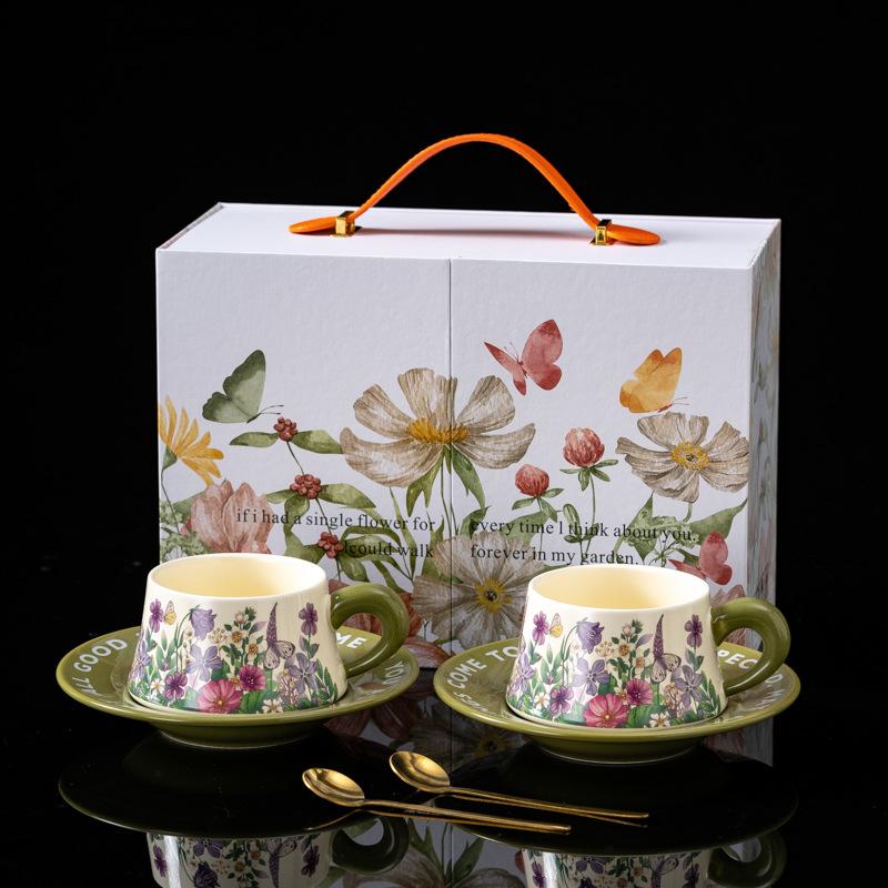 The Light Luxury Mug Is Exquisitely Crafted with A High Level of Appearance It Is A Floral Ceramic Coffee Cup and Saucer Gift Box Set