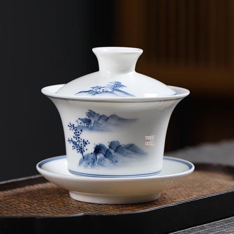 MULTIPOTENT Hand-Painted Landscape Thin Porcelain Sancai Lid Bowl