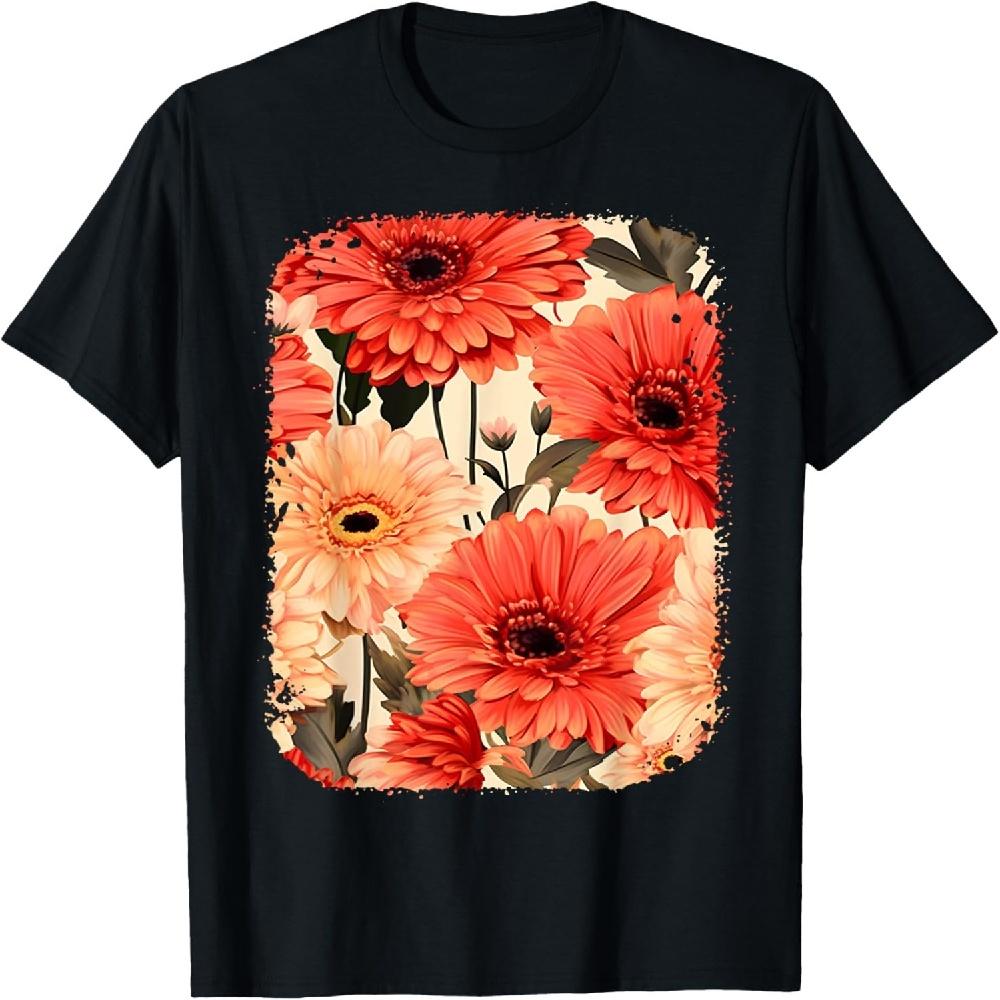 Gerbera Daisy Flower Bouquet Plant Lover Floral Pattern T-Shirt