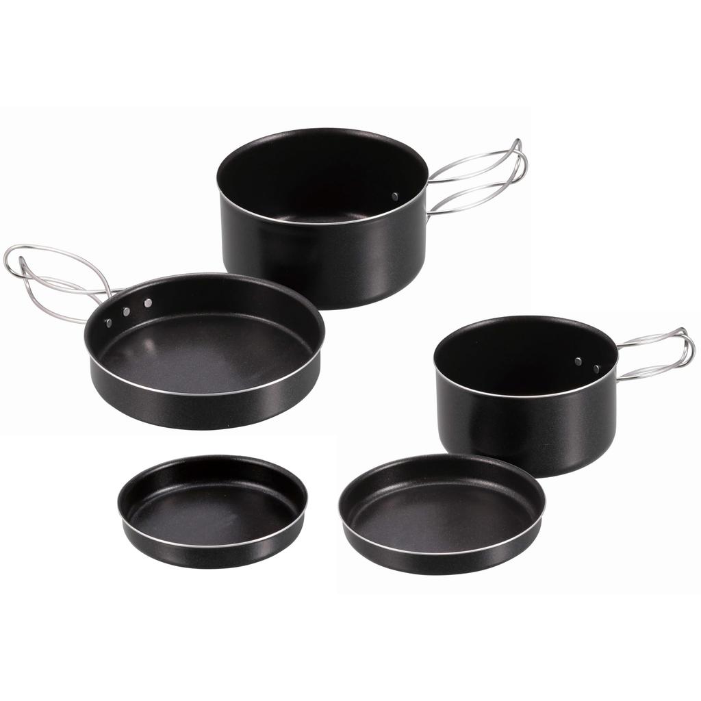 ・Features: 5-piece set including a 14cm saucepan, a 12cm saucepan, a lid that doubles as a frying pan, a plate (lid), and a medium plate! Made in Tsubame-Sanjo, the city of metalwork. Easy to clean. Non-stick fluororesin coating. Lightweight aluminum with excellent heat conductivity. Includes a storage bag for easy packing, carrying, and storage. Compact and convenient. Perfect for backpacking.