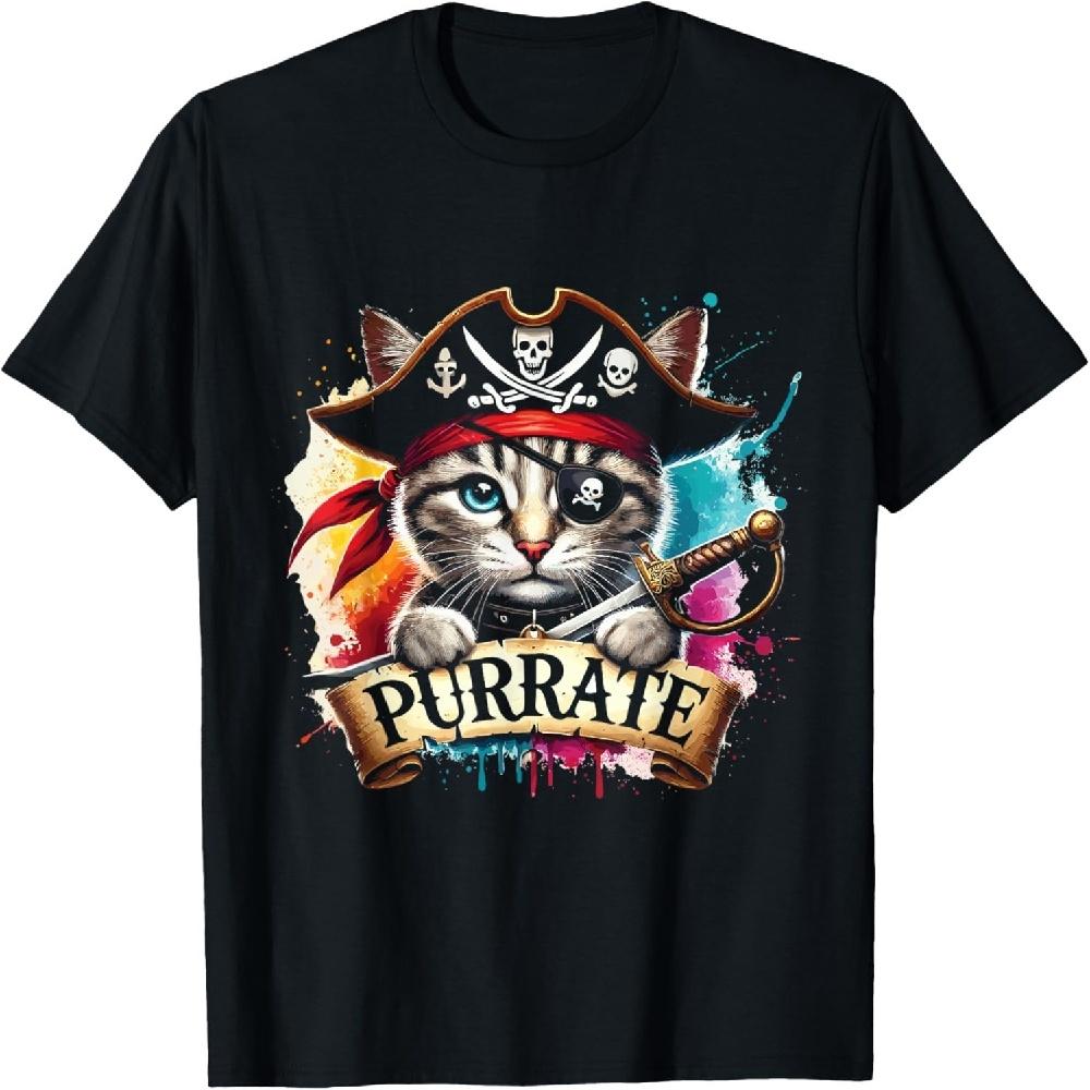 Halloween Pirate Cat Purrate Cute Cat T-Shirt