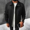Men's Business Casual Lapel Jacket With Pockets Solid Color Brushed Fleece Coat