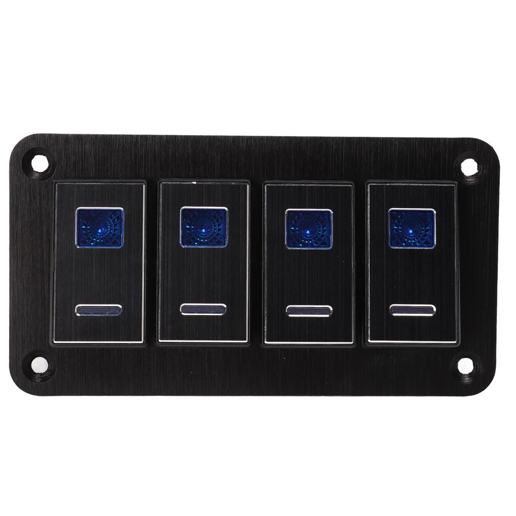 4 Gang Rocker Switch Panel Aluminum Alloy DC12V‑24V Pre Wired On Off Toggle Switch for Car RV Motorcycle Bus Trailer UTV