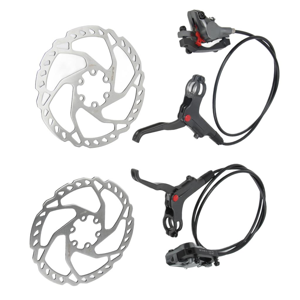 Hydraulic Disc Brake Features: One piece brake lever cylinder to avoid brake lever oil leakage and air intake hazards. Lightweight design, simple and beautiful, bilateral brake piston for stronger braking force, more stable and reliable performance. The three finger brake lever is easy to operate, easier to use, and more flexible in emergency response..