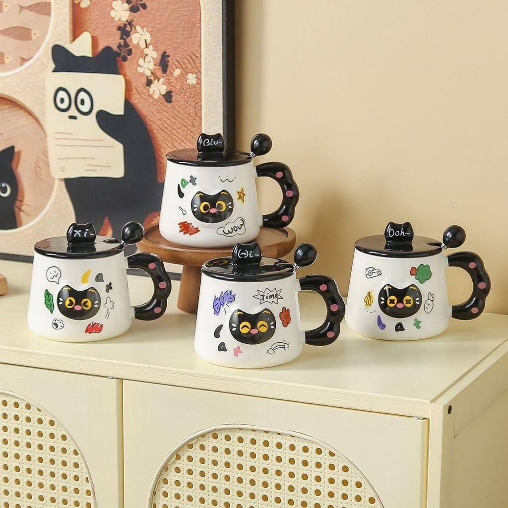 Cute Cartoon Cat Ceramic Mugs with LIDS Couple Water Cups High Appearance Level Souvenirs Birthday Gifts Breakfast Cups